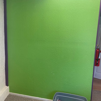 Here are photos of how it started and what it looked like at the end of the day (the wall was originally green):